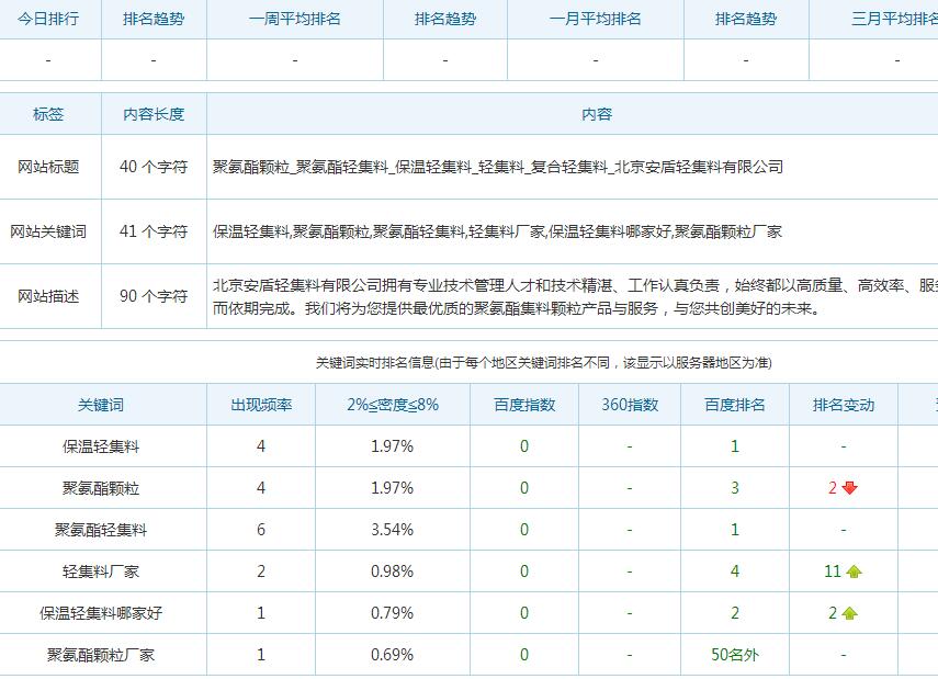 北京安盾轻集料有限公司主要经营聚氨酯轻集料,聚氨酯颗粒,保温轻集料等,公司运用现代科学的管理手段,热忱为广大客户提供优秀的服务。今天北京SEO优化与大家做一下该公司网站优化的分析: