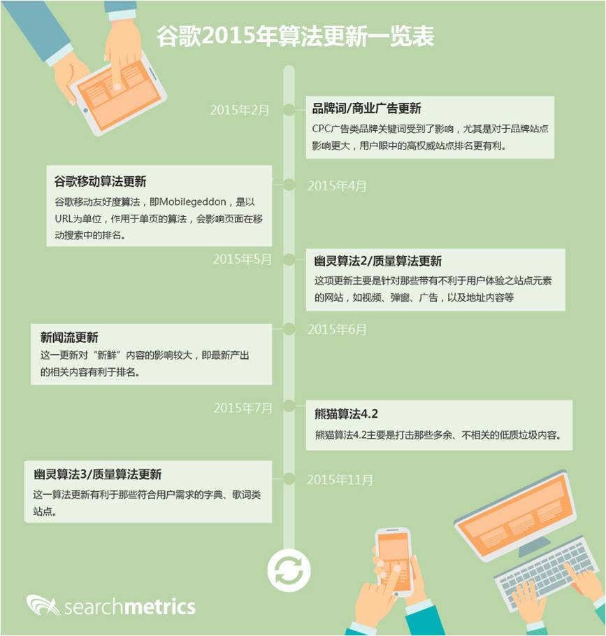 最后,附上2015年谷歌搜索引擎算法重大更新一览表: